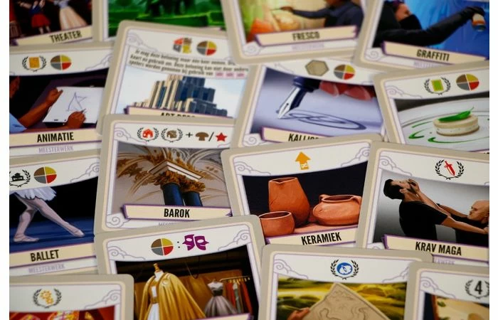 In deze tweede uitbreiding van Tapestry ga je je beschaving naar een hoger cultureel plan tillen door middel van een nieuw ontwikkelingsspoor: kunst! De sporen “kunst” en “wetenschap” maken samen gebruik van een nieuwe 20-zijdige dobbelsteen. Ook kun je speciale inspiratietegels bemachtigen, die als een upgrade precies bovenop de vaste inkomenssporen passen.