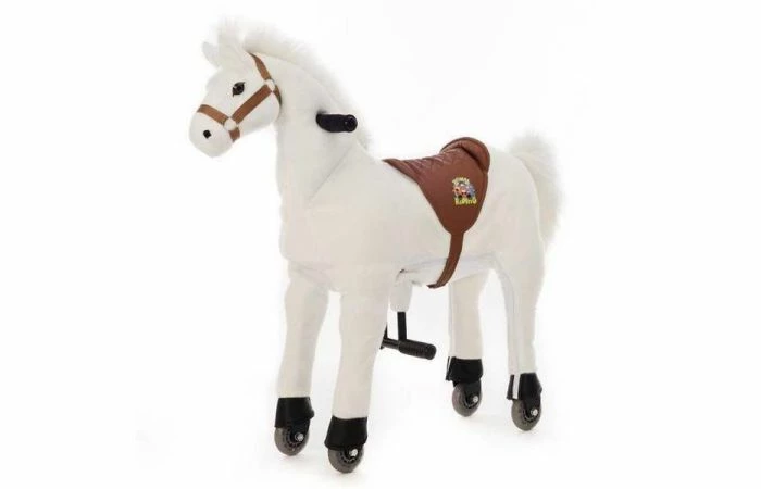 Het wordt gekenmerkt door een zacht pluche body en een innovatief aandrijfsysteem met stuur, handvaten, voetsteunen en kunststof wielen.