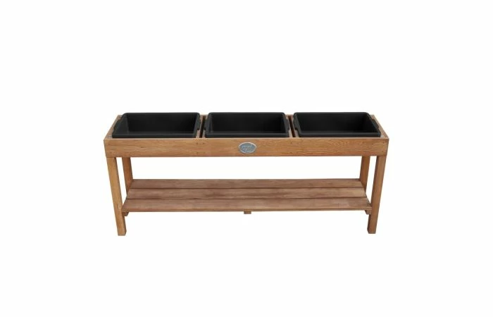 - Drie uitneembare blauwe kunststofbakken voor zand of water.