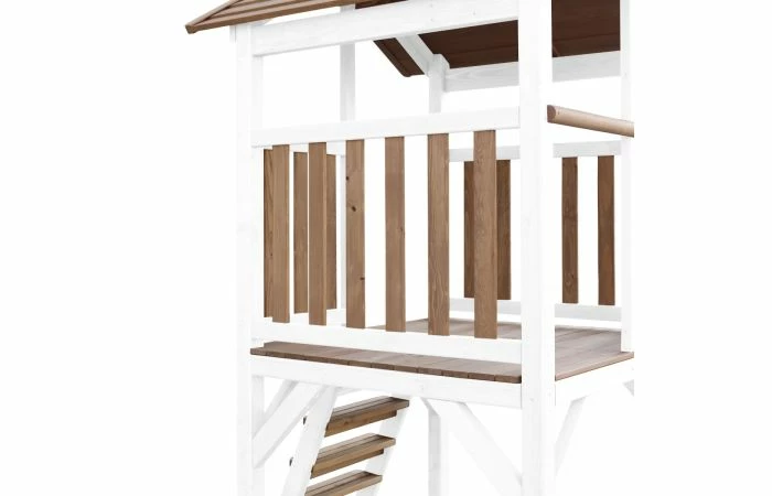 In de AXI Beach Tower Speeltoren met Enkele Schommel Bruin/wit lijkt het net alsof je kinderen in een echt strandhuis zijn. Klimmen, glijden en schommelen zijn de favoriete bezigheden van jonge kinderen. En dat is allemaal mogelijk met deze Beach Tower. Het is onmogelijk dat kinderen zich hier niet uren mee zullen vermaken op een mooie zonnige dag.