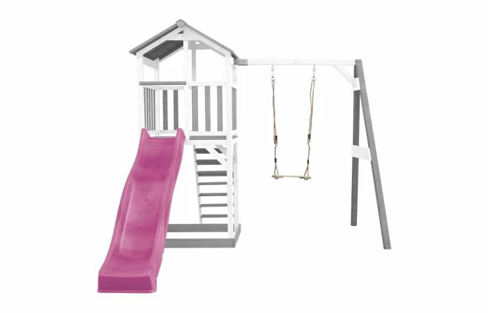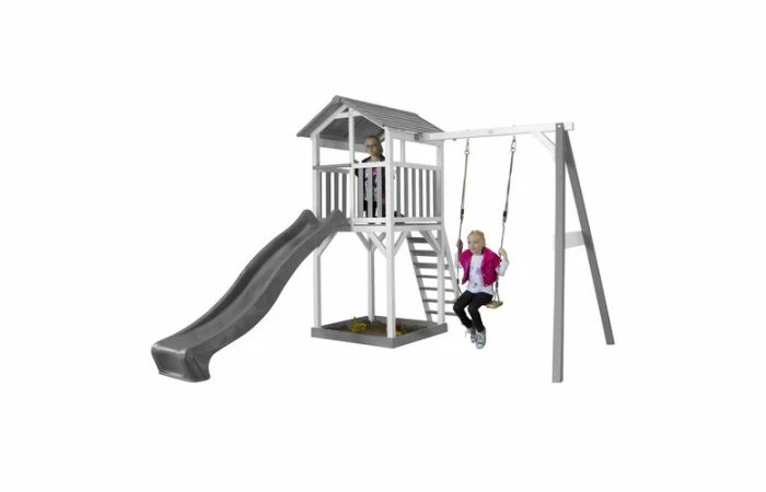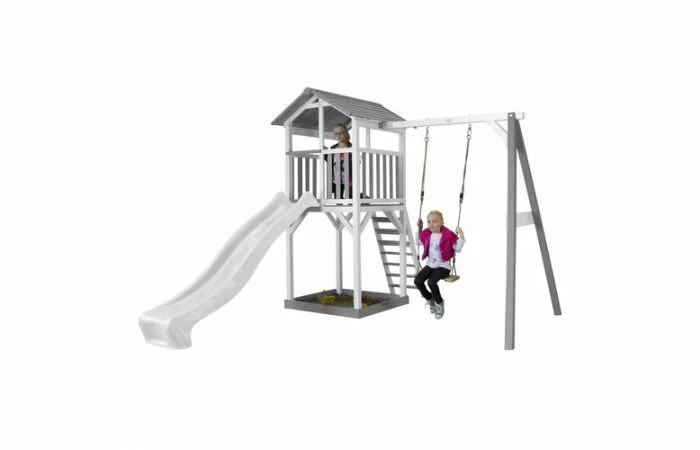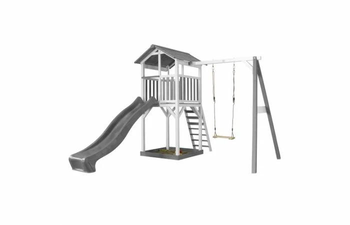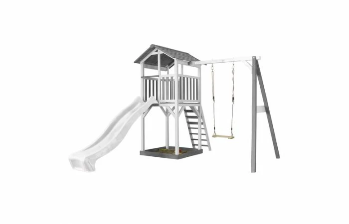 AXI Beach Tower Speeltoren Met Enkele Schommel Grijs/wit Met Glijbaan