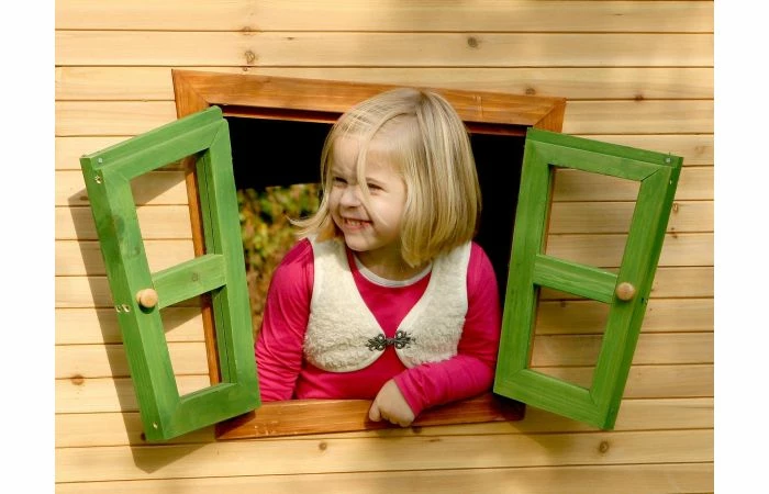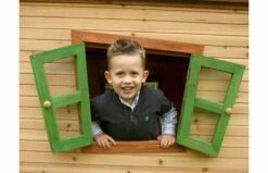 Specificaties houten speelhuisje Jesse- 180 x 118 x 167 cm- Cederhouten planken van 15 mm- Framewerk van 38 mm – 100% FSC houtsoort- Aziatisch cederhout, genaamd Cunninghemia lanceolata.