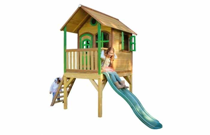 Organiseer een high tea in je eigen houten speelhuis. Bak de lekkerste koekjes en taarten en nodig je vriendinnen uit. Klim de ladder op en zoef snel weer naar beneden van de lange glijbaan.