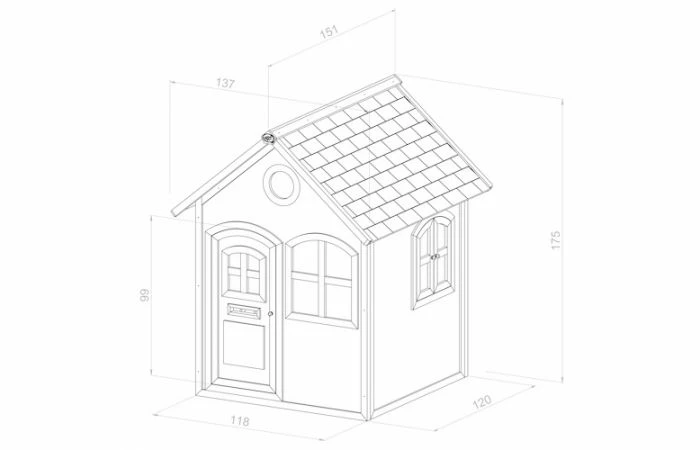 Speelhuis Julia heeft een totale hoogte van 175 cm. Het speelhuis is 151 cm lang en 137 cm breed. Met een binnenmaat van 115 x 113 cm en een nokhoogte van ca. 166 cm is Julia een middelgroot houten speelhuis.