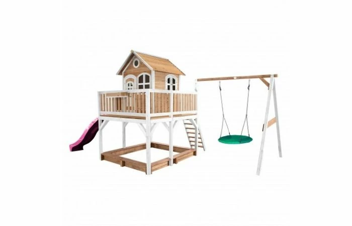 AXI Classic Liam Speelhuis met Summer Nestschommel Bruin/wit – Glijbaan in verschillende kleuren: