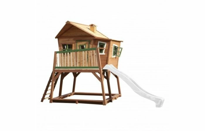 Maximaal speelplezier en urenlang vermaak! Met speelhuis Max kunnen de kinderen alle kanten op. Spelen, picknicken en zelfs logeren in het mooie grote speelhuis of lekker langs de glijbaan naar beneden suizen. Als ze daarmee klaar zijn kunnen ze zich nog uren vermaken in de enorme zandbak. Via het kijkraampje aan de achterkant speuren de kinderen de hele omgeving af. Door dit raampje kunt u ook nog een ?oogje in het zeil houden?. Met een extra accessoire zoals een brievenbusje of een verrekijker maakt u het Max nog completer.