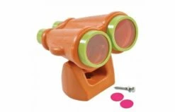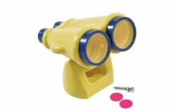 Deze verrekijker is een leuke toevoeging voor uw speelhuis. Het helpt de kinderen om volledig op te gaan in hun eigen speelwereld. Met deze verrekijker maakt u ieder speelhuisje of speeltoren tot een echte hut! De verrekijker heeft een paar kleine gele en een paar grote transparante lenzen. Ook wordt er een extra paar kleine, rooskleurige lenzen (reservelenzen) meegeleverd. Inclusief bevestigingsmateriaal en verbindingsstuk.