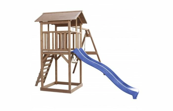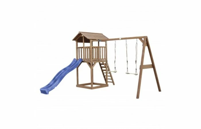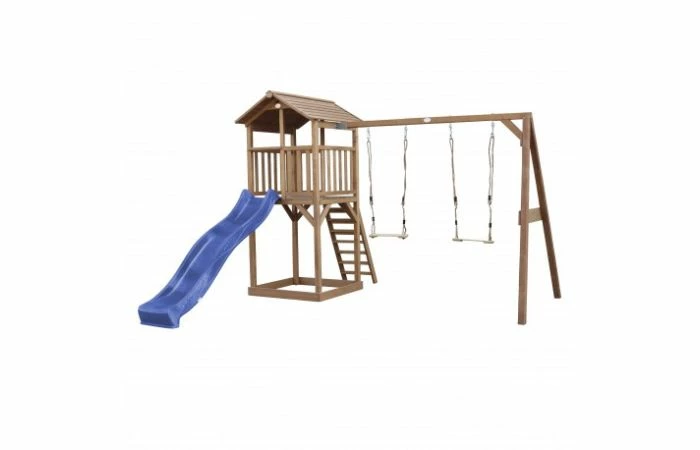 Beach Tower Speeltoren Met Dubbele Schommel Bruin Blauwe Glijbaan