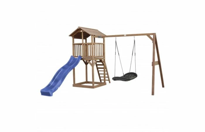 Beach Tower Speeltoren Met Roxy Nestschommel Bruin – Blauwe Glijbaan