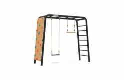 Inclusief rubberen schommel, trapeze en klimmuur.