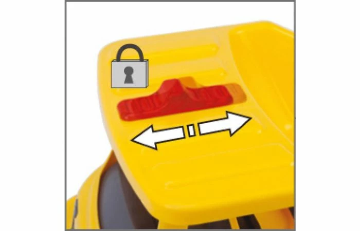 De kiepbak heeft een draagvermogen van maar liefst 25kg en kan een inhoud van 4,2L aan. Het vergrendelen van deze kiepbak gaat zeer eenvoudig dankzij de rode schakelaar bovenop de truck. Hierdoor voorkom je dat de kiepbak tijdens het rijden open zal gaan.