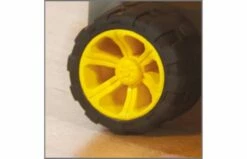 De wielen van de truck zijn gemaakt van speciaal rubber. Dit rubber zorgt ervoor dat, wanneer je de truck binnen gebruikt, hij geen strepen achter zal laten op je dure houten (laminaat/parket) vloer.