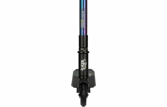 Stunt als een baas op jouw Black Dragon Neo Maze stuntstep! Deze shiny neochroom Black Dragon stuntstep heeft een extra sterk rechthoekig aluminium en heavy-duty stalen frame met een triple stuurstang klem. Perfect om trucjes mee te doen op de skatebaan dus. De 85A PU wielen hebben een gespaakte wielkern en ABEC 7 carbon lagers. Hierdoor is dit stepje licht van gewicht en ben je supersnel en wendbaar. De step is gemaakt om de leukste tricks en jumps mee te landen en kan goed tegen een stootje. Je hebt een goede grip dankzij de rubberen handvatten met extra stootbescherming aan de uiteinden en op het achterwiel zit een stalen flex voetrem. En om hem helemaal af te maken, heeft de step een glanzend neochrome design met een coole uitstraling, je steelt gegarandeerd de show met deze vette stuntstep. De maximale belasting is 100 kg en de step komt met 2 inbussleutels voor de stuurklem.