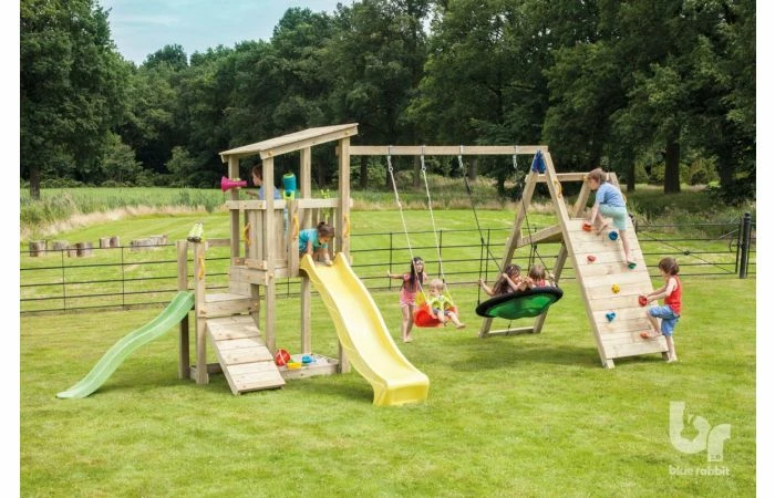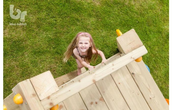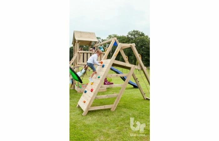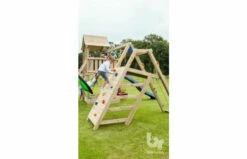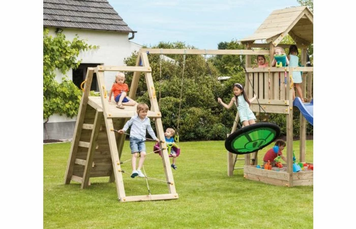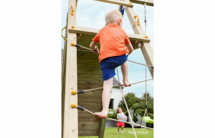 De @challenger is de luxeversie van de schommeluitbreiding. De schommelbalk heeft twee plaatsen voor schommeltoebehoren. Ook bevat het een hellende platformconstructie die van drie zijden te beklimmen is. Kies de grote, brede klimmuur met klimstenen, het klimnet of de schuine ladder om de top te bereiken. De @challenger, die vergelijkbaar is met een @swing, is op te bouwen in twee varianten met een verschillende balkhoogte.
