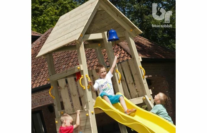Beklim snel deze originele speeltoren en geniet van weidse uitzichten. De hellende zijwanden en de geïntegreerde brede klimwand geven de Belvedere zijn bijzondere uiterlijk. Zowel de glijbaan als de ladder bevinden zich aan de voorzijde, wat van de Belvedere dé ideale speeltoren maakt voor kleinere tuinen.