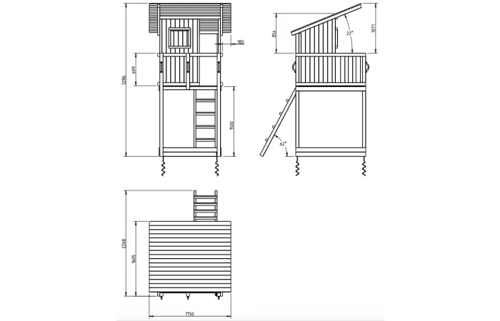 LET OP: Het houtpakket wordt geleverd zonder glijbaan en accessoires, deze kunnen bij besteld worden.