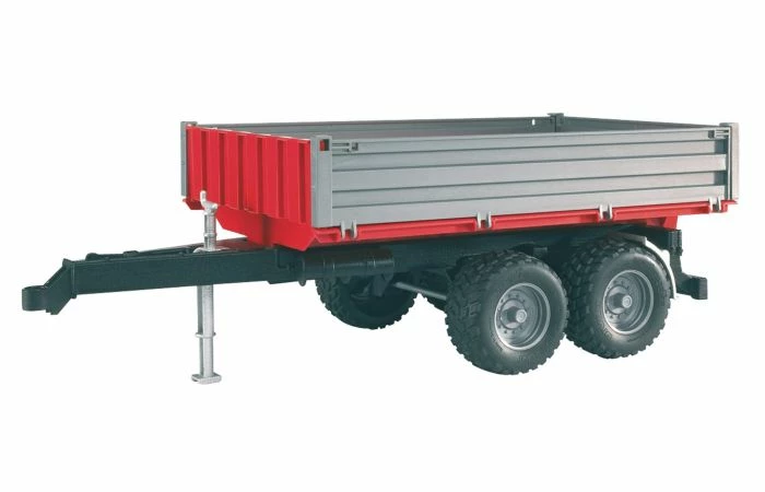 Deze lichte aanhanger kan je voor van alles gebruiken op je boerderij, op je bouwterrein of ergens anders. Vervoer er spulletjes, hooi, geoogste gewassen of iets anders in. Je hoeft de aanhanger alleen maar vast te maken aan je Bruder tractor, een MB unimog, een vrachtwagen of iets anders en je kan ermee rijden! De aanhanger kan staan op een steunpoot en je kan hem laten kiepen. De zijkanten kan je omlaag klappen zodat je hem makkelijker kan inladen, uitladen of laten dumpen.