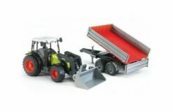 De voorlader van deze Claas Nectis 267 F tractor van Bruder is afneembaar, de zijwanden van de aanhangwagen kunnen ingeklapt worden. Met het bijgeleverde stuurtje is deze tractor eenvoudig te besturen!