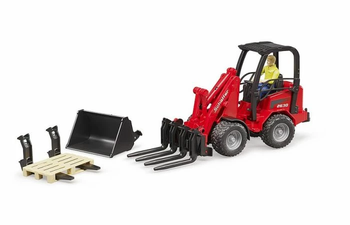 Bruder 2191 Schaeffer Shovel met Voorlader en Accessoires. Een mooie uitbreiding voor jouw Bruder collectie. De voorlader is rood van kleur en is gemaakt van kunststof. Deze set bevat ook 2 extra opzetstukken voor op de voorlader.