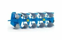 De kantelploeg kan draaien om zijn as. Tijdens het rijden maakt die gebruik van het uitklapbare steunwiel. Geschikt voor alle tractoren Bruder.