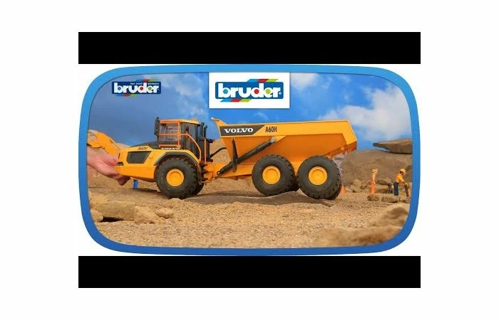 Een van de sterkste dumpers, de Volvo A60H, is nu te vinden in de wereld van machinebouwers van BRUDER. Net als bij het grote model is de off-roadcapaciteit voorbeeldig dankzij de enorme knikbesturing in combinatie met de enorme ballonbanden.