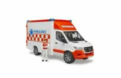 Met deze Bruder MB Sprinter-ambulance met bestuurder ben je snel op de plaats van het ongeval. Dit voertuig is uitgerust met een verscheidenheid aan functies, waardoor het er supergaaf uitziet. Zet de chauffeur in zijn cabine via de openslaande deuren van de ambulance.