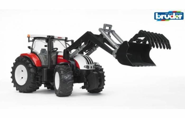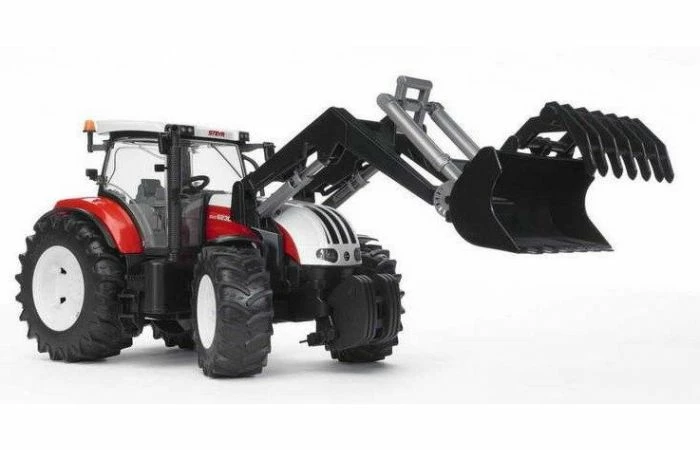 Deze kleurrijke Steyr CVT 6230 tractor met voorlader van Bruder is realistisch op schaal nagemaakt, Met het bijgeleverde stuurtje is deze tractor eenvoudig te besturen!