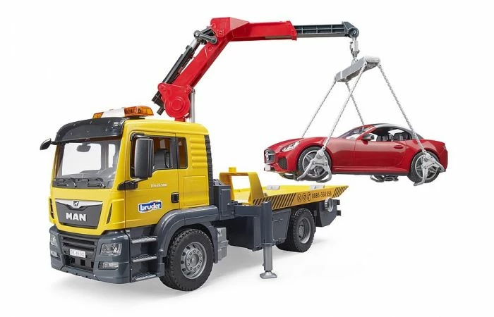 De kraan van de sleepwagen heeft zowel een hijs- als sleepfunctie, zodat je de auto op verschillende manieren op de trailer kunt laden.