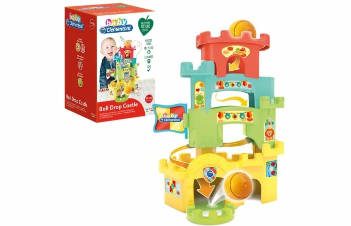 Deze Clementoni Stapeltoren heeft de vorm van een kasteel en is voorzien van een mooie ballenbaan. Stop de bijgeleverde bal in de bovenste toren en zie hoe hij in het kasteel naar telkens een niveau naar beneden valt, totdat hij uiteindelijk voor de ingang stopt. Met dit spel ontwikkelt een kind zijn of haar behendigheid en leert het over de relatie tussen oorzaak en gevolg. Afmetingen: 15 x 24 x 15 cm. Geschikt voor kinderen vanaf 10 maanden.