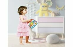 Clementoni Activity radio, waarmee kinderen naar muziek kunnen luisteren en met hun dierenvrienden kunnen spelen. Kies de zender met een van de 4 schakelaars en luister naar verschillende genres! Met kleurige oplichtende schakelaars die verschillende melodieën activeren en baby’s door spannende interactieve spelervaringen leiden, waarbij ze voortdurend op nieuwe manieren worden gestimuleerd. Ook zijn er kleine fysieke interacties om de cognitieve en fijne motorische vaardigheden te ontwikkelen. Elk dier is gekoppeld aan een muziekgenre, zodat het kind vertrouwd raakt met uiteenlopende ritmes: popstijl voor de hond, rock voor de haan, rap voor de poes en rustgevende geluidjes voor de vogel. Er zijn vier grote schakelaars die kunnen worden ingedrukt om de diergeluiden en de bijbehorende muziek te horen, een bal die de handvaardigheid stimuleert en een handvat om de radio aan te dragen. Wordt inclusief 2 AAA-batterijen geleverd. Geschikt voor kinderen vanaf 6 maanden.