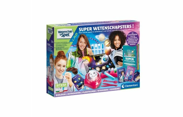 De set bevat experimenten, die meisjes nieuwsgierig zullen maken naar STEM-vakken. Achter veel ontdekkingen gaan namelijk vrouwelijke gezichten schuil: geestige en koppige wetenschapsters die belangrijke resultaten hebben bereikt! Meisjes zullen zich vermaken met hypotheses, gevolgen en resultaten en nieuwe wetenschappelijke concepten en benaderingen ontdekken. Inclusief centrifuge voor DNA-extractie en instrumenten om scheikunde- en biologie-experimenten uit te voeren. De set bevat ook zaden, turf en potten om de wereld van de plantkunde te ontdekken. Ook aanwezig in de set: glow-in-the-dark planeten, een puzzel die het zonnestelsel nabootst en kartonnen platen om de leuke kant van logica en coderen te ontdekken. Met handleiding om de geschiedenis en het leven van deze grote wetenschapsters te ontdekken. Wordt geleverd in full-colour doos. Geschikt voor kinderen vanaf 8 jaar.