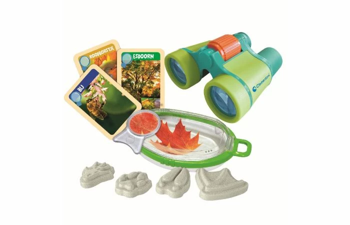 Beleef talloze avonturen in de natuur! Een koffertje met alles wat kinderen nodig hebben om de natuur te observeren. Inclusief: een vogelkijker, een speciale insectenloep, gipsen vormen voor het maken van dierensporen en kaarten met informatie over de natuur. Een eenvoudige en boeiende set om buiten te spelen en in de huid van een echte ontdekkingsreiziger te kruipen! Wordt geleverd in full-colour doos. Geschikt voor kinderen vanaf 5 jaar.