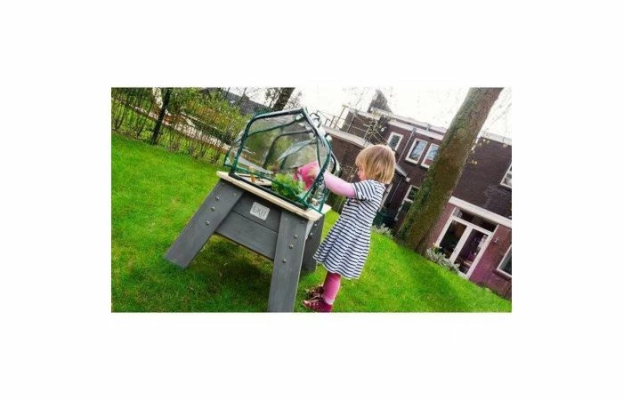 Dan is deze EXIT Aksent Kweektafel L Deluxe met een ideale hoogte, de perfecte kweektafel! Ook ideaal voor tuinen die wat kleiner zijn, of tuinen die verhard zijn. Stort de bak, die aan de binnenzijde bekleed kan worden met het meegeleverde worteldoek, vol met goede grond en de kinderen kunnen direct aan de slag.