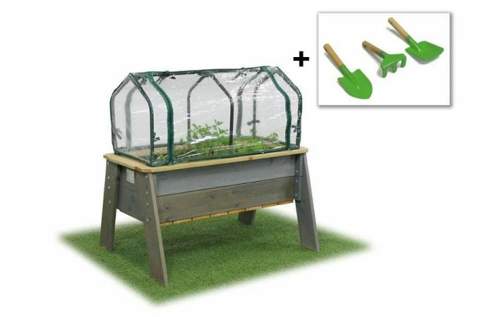 De EXIT Aksent Kweektafel L Deluxe is inclusief een kweekkas overkapping en een set EXIT Kinder Tuingereedschap. Lekker je eigen tuintje onderhouden is nog nooit zo simpel geweest!