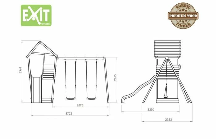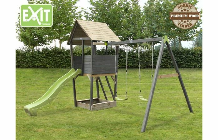 De toren, met een platformhoogte van 1.20m, is aan de ene kant bereikbaar door middel van een trapje, welke bovenaan twee handvatten heeft voor extra grip. En aan de andere kant een prachtige lange glijbaan! Ook heeft de EXIT Aksent Speeltoren een zandbak waar naar hartelust zandtaartjes en zandkastelen gebouwd kunnen worden. En met de schommelaanbouw, die overigens aan beide zijden van de speeltoren te bevestigen is, kun je met je vriendjes, broertjes of zusjes heerlijk spelen!