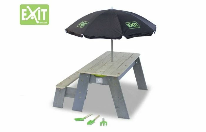 Het blad is afneembaar waardoor kinderen het ene moment met het EXIT Tuingereedschap een zandkasteel kunnen bouwen en het andere moment, als het blad er weer op zit, heerlijk kunnen knutselen, bouwen of tekenen. Het bankje is verstelbaar zodat je zelf kunt bepalen wat de zitafstand is tot aan het werkblad; 22,5cm of 18,5cm.