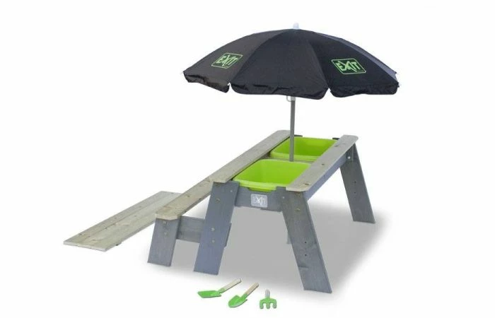 Het bankje is dus aan de leeftijd van het kind aan te passen. Met de meegeleverde EXIT Parasol zitten de kinderen ook nog eens lekker in de schaduw op zonnige dagen!