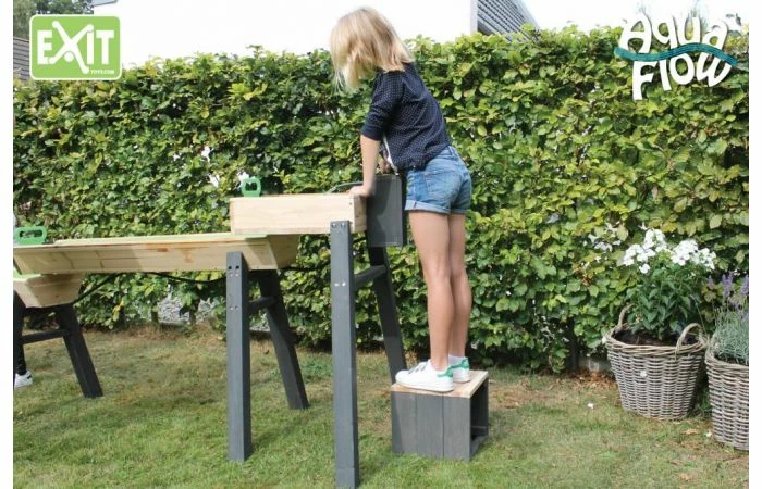 De EXIT AquaFlow opstapje is gemaakt van gedroogd cederhout. Dit is een bijzondere houtsoort omdat het van nature bestand is tegen weersinvloeden en vocht en dus resistent is tegen houtrot. Het cederhout is niet behandeld met ongezonde chemicaliën, zoals dat bij grenen of vuren wel vaak het geval is. Cederhout is dus goed voor het milieu en veilig voor de kinderen.