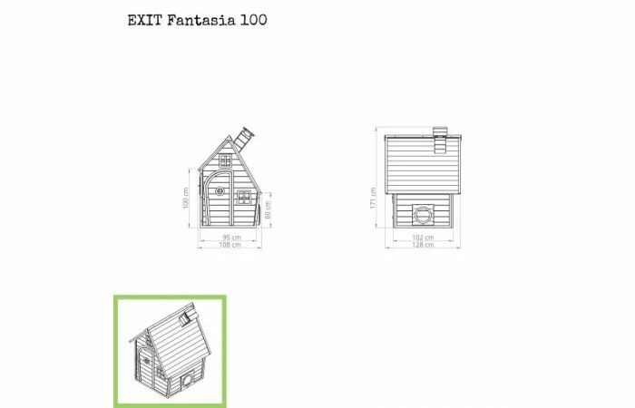 In het EXIT Fantasia 100 houten speelhuis voelt ieder kind zich thuis. Je wordt al vrolijk door alleen naar de speelhuisjes te kijken. Dit speelse EXIT Fantasia huisje staat op de grond en neemt daardoor weinig ruimte in beslag. Het houten speelhuisje is eenvoudig in elkaar te zetten met de vooraf gemonteerde panelen. Details zoals een schoorsteen, speels gevormde raampjes en een scheve balustrade maken het EXIT Fantasia 100 houten speelhuisje helemaal af!