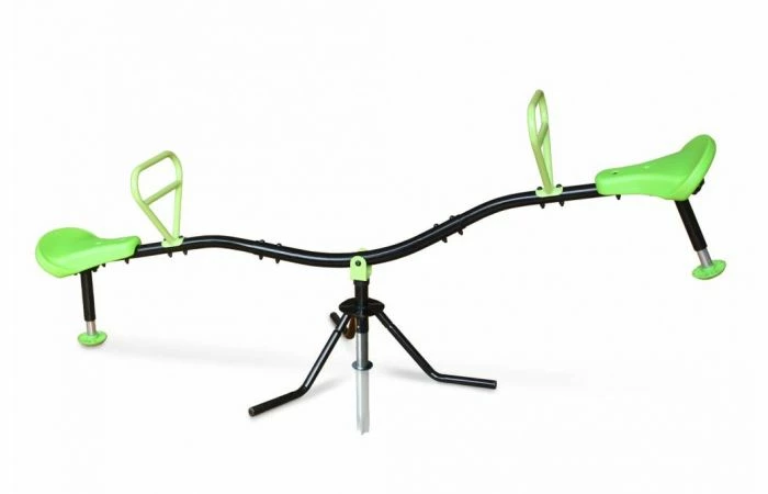 Kwaliteit. Het zeer sterke frame (het staal van de de horizontale stang -> Ø42 x 1,8mm) is gegalvaniseerd en daarna ook nog eens zwart gepoedercoat. Een optimale bescherming tegen roest. De wipwap is voorzien van twee zitjes van stevige kunststof en heeft daarnaast metalen handgrepen. Maximum gewicht per zitje: 50 kilo.