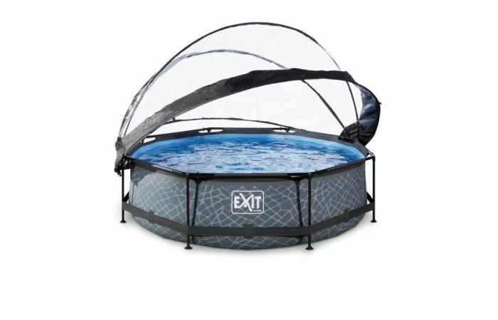 Het EXIT zwembad ø300x76cm is een rond frame zwembad met overkapping.