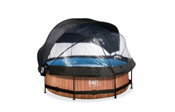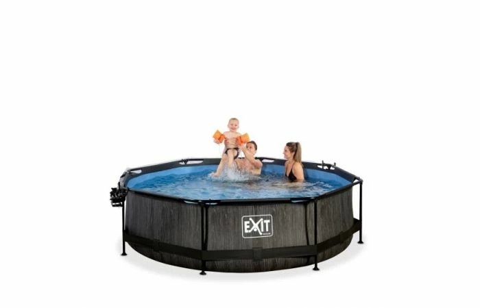 Het EXIT zwembad ø300x76cm is een rond frame zwembad met overkapping en schaduwdoek. Het zwembad is standaard voorzien van een filterpomp en valt op tussen andere zwembaden door zijn stoere donkere houtpatroon. Ben je op zoek naar een leuk en tegelijkertijd uniek en hoogwaardig frame zwembad in je tuin? Steel de show met de ronde zwembaden van EXIT Toys!