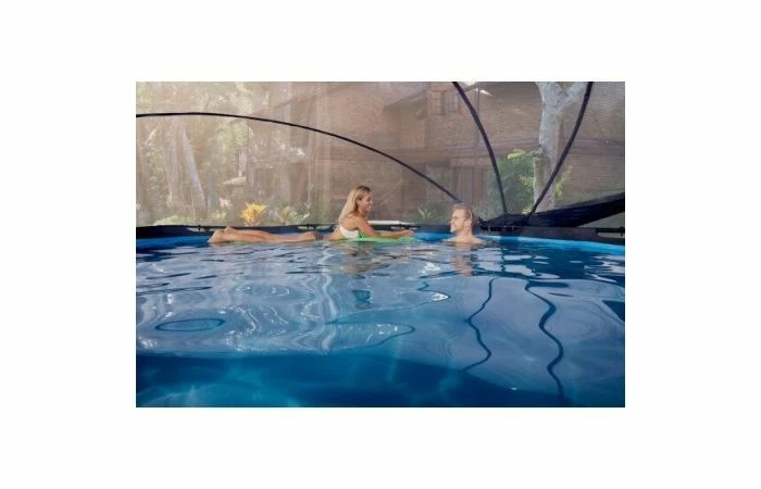 Met de EXIT overkapping voor zwembaden ben je niet langer afhankelijk van de weersvoorspellingen en heb je zelfs met minder mooi weer plezier van je zwembad. De overkapping is tegelijkertijd een duurzame oplossing voor het verwarmen van het water. Wanneer het zwembad niet wordt gebruikt, kun je de kap met de meegeleverde banden stevig aan het bad bevestigen. Zo zorg je er meteen voor dat er geen vuil in het water kan komen.