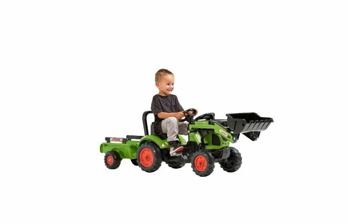 Voel je als een heuse boer en trek er op uit met deze coole Claas Arion 410 tractor van Falk! Deze traptractor wordt geleverd inclusief aanhanger. Vervoer wat jij maar wilt! Hij is gemaakt van stevig kunststof en heeft slijtvaste wielen.