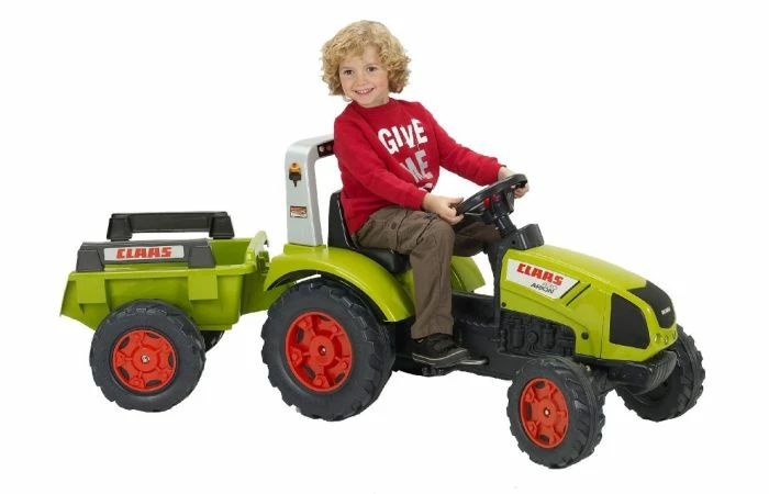 Deze kunststof Falk ‘Claas Arion 430’ groene traptractor is uitgevoerd in origineel Claas design, heeft een totale lengte van 160cm x 53 x 66 cm. Afmeting omdoos 96,5 x 53 x 54 cm. Wordt geleverd inclusief aanhanger. Het is een mooie traptractor van een robuuste kwaliteit, heeft kunststof wielen die zeer slijtvast zijn en het stuur bevat een toeter met geluidsfunctie. De aanhanger is makkelijk te koppelen en te ontkoppelen: zo kan er van alles vervoerd worden. Het zitje is in verschillende standen te monteren en is hierdoor geschikt voor kinderen vanaf 3 jaar en tot een gewicht van max. 50kg.