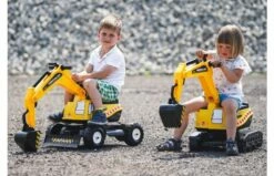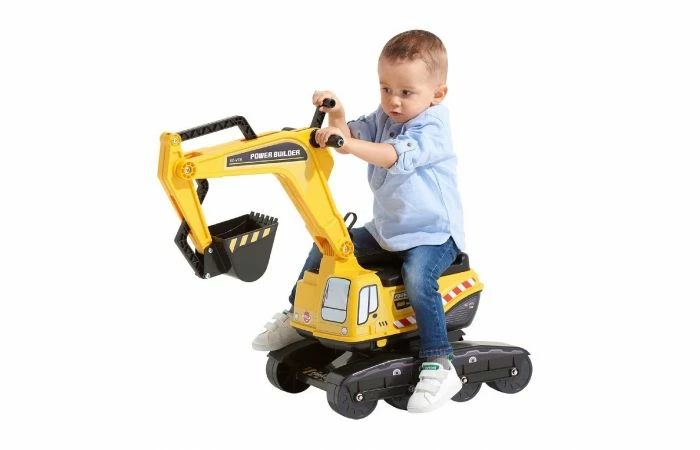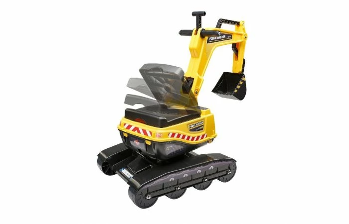 Falk Power Builder graafmachine met 360 graden roterende cabine, uitgerust met een werkende stoel en volledig mechanische shovel. Deze gele miniatuur bouwmachine is speciaal vervaardigd om uren speelplezier te garanderen!