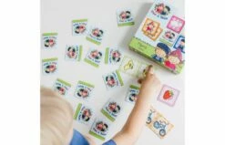 Memo is bij iedereen bekend en kinderen zijn er helemaal dol op. Voor dit memospel zijn afbeeldingen gebruikt uit de serie Fien & Teun en dat maakt het voor kinderen heel herkenbaar en extra leuk. Draai telkens twee kaartjes om en probeer te onthouden waar twee dezelfde exemplaren liggen. Wie uiteindelijk de meeste paren heeft wint. Op de kaartjes staan afbeeldingen van Fien, Teun, boerderijdieren, fruit en nog veel meer. Dit memospel bestaat uit 40 kaartjes van zeer stevig karton. Voor kleinere kinderen is het verstandig eerst met een beperkt aantal kaartjes te beginnen. Geschikt voor kinderen vanaf 3 jaar.