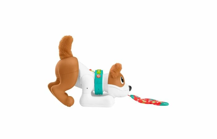 De Fisher-Price 123 Kruip met Puppy speelt graag, net als een echte puppy, en hij is getraind om je kleine hondenliefhebber nieuwe trucjes te leren. Als de baby aan de zachte sok in de bek van Puppy trekt, kwispelt de guitige pup met zijn staartje, beweegt zijn kopje en gaat er vandoor, waardoor je baby wordt aangemoedigd om achter hem aan te kruipen! Voor meer interactief plezier kunnen de kleintjes op de oplichtende knoppen op de halsband van Puppy drukken om educatieve liedjes, geluiden en zinnetjes te horen over het alfabet, over tellen en over kleuren. En dankzij de meegroeitechnologie kun je het leerspel moeilijker maken naarmate je baby groeit. Wordt geleverd exclusief 4 AA-batterijen in touch box. Geschikt voor kinderen vanaf 6 maanden.