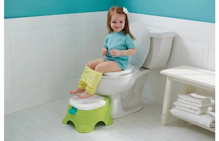 Zindelijk worden was nog nooit zo leuk! Dit Fisherprice potje groeit mee met je kind: van een potje met vier koninklijke melodietjes tot een verwijderbare toiletbril voor op het echte toilet. En als je kind wat ouder is, kan het potje worden gebruikt als een krukje, bijvoorbeeld om bij de kraan te kunnen. Dankzij de handvatten kan je kind veilig en comfortabel op het potje zitten. Het potje heeft een plasschermpje voor jongens en de binnenpot is makkelijk schoon te maken. Als je kind klaar is voor het echte toilet, kan de bril van het potje op het toilet worden gebruikt. De bril past op de meeste toiletbrillen. Wordt inclusief 1 AA-batterij geleverd met sleeve. Maximaal draaggewicht: 90 kg.