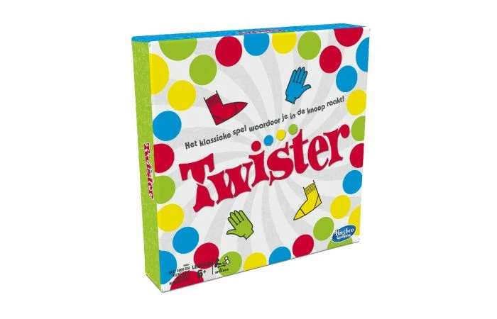 Voeg plezier toe aan een feestje of familieavond met dit klassieke spel dat spelers in de knoop legt! Eén persoon geeft een draai aan de draaiwijzer, en zie wat er gebeurt wanneer de spelers hun handen en voeten op de mat proberen te houden! Rechtervoet op rood! Wie kan het? Linkervoet op groen: wie heeft het onder controle? Als de knie of elleboog van een speler de mat raakt of hij of zij valt om, dan ligt ‘ie uit het spel. De speler die als laatste overeind blijft, is de winnaar! Geschikt voor kinderen vanaf 6 jaar.